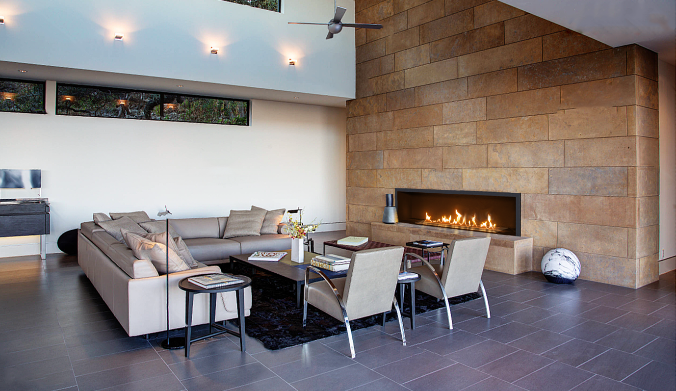 - Стоимость камина зависит от длины корпуса (от 600 до 2300 мм), вида топливного блока (одного топливного блока с единой линией огня или нескольких), лицевой рамки (нержавеющая сталь, латунь, либо её отсутствие), а также наличия либо отсутствия защитного стекла и декоративного стекла стемалит на задней стенке.