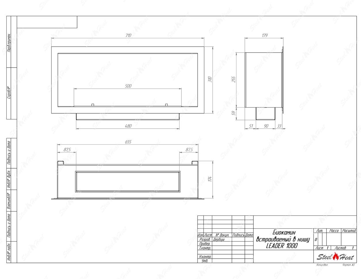 Встраиваемый Биокамин SteelHeat LEADER 700 предназначен для встраивания в глухие ниши из гипсокартона, кирпича, пеноблоков, бетона.