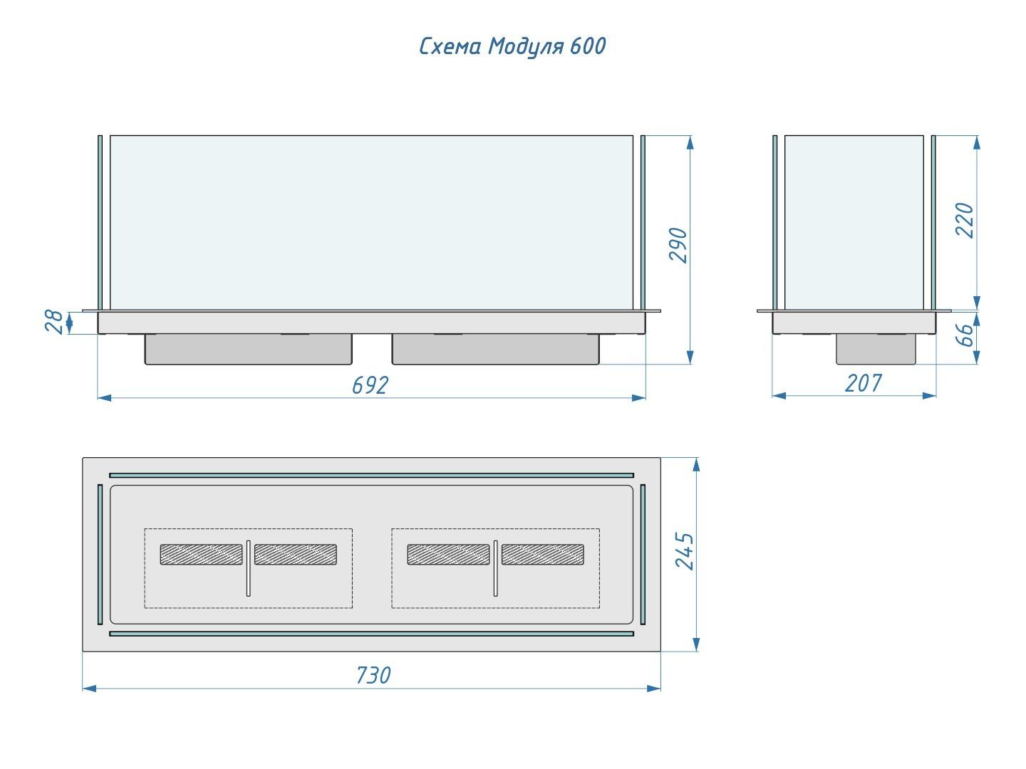 Встроенный модульный биокамин Lux Fire Модуль 600